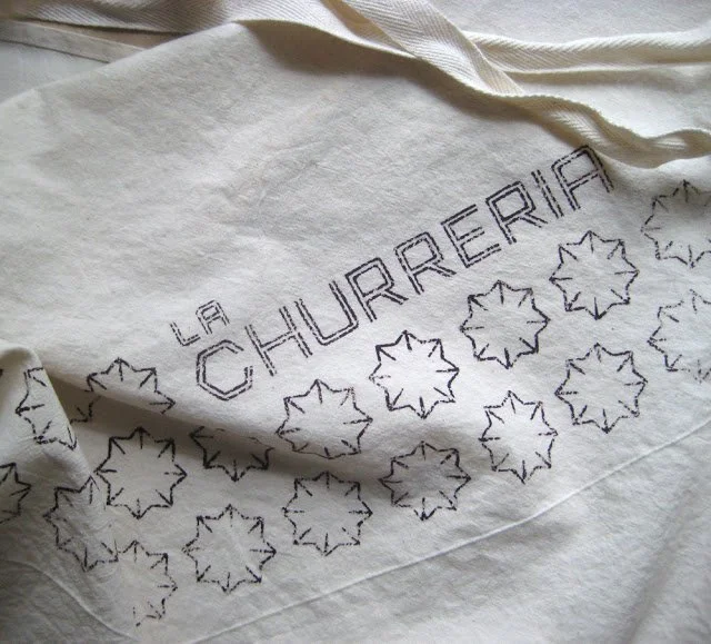A beautiful new café opened in the Nolita neighborhood of New York City this month. It’s called La Churreria and it serves mouth-watering golden churros with chocolate for dipping and delicious pressed Spanish sandwiches. I had the privilege of making aprons for the staff and when I visited yesterday to drop off a new batch, I was so excited to see how amazing the aprons looked in action. It’s exactly the kind of place where I would want my linens to find a home so I’m very grateful to Livia Manfredi, La Churreria’s extraordinary manager, for finding me and supporting my work. If you’re in NYC, anywhere at all in NYC, make a point to stop in and relax at one of the cozy tables. 284 Mulberry Street bet Houston & Prince. And check out the article and slideshow of photos on The New York Times that pictures one of the towels I printed for the café.